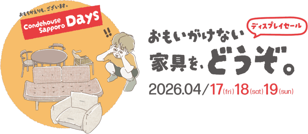 このたび、カンディハウス札幌では、“3日間限定の展示品セール”「Condehouse Sapporo Days」を開催いたします。